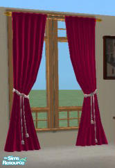plain magenta doublewide tieback curtains with white tassles