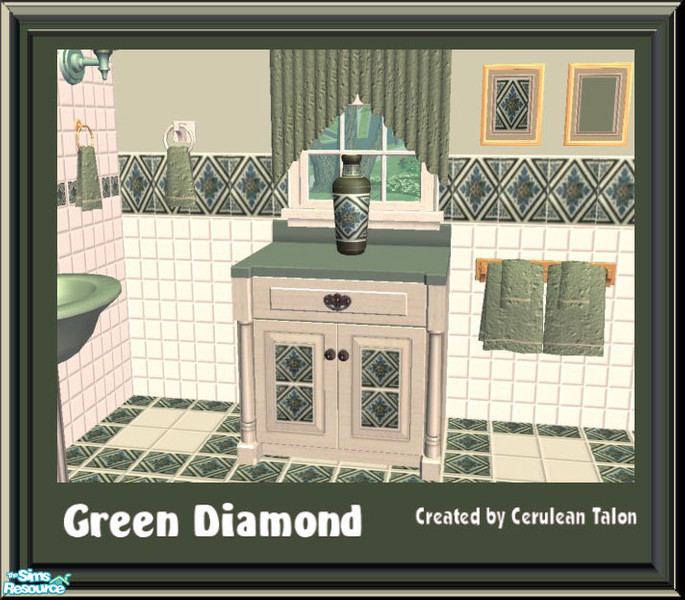 Whether your Sim can only afford the cheapest bath items or the best, this set has it all. Lovely rich shades of greens, blues and crisp clean white.