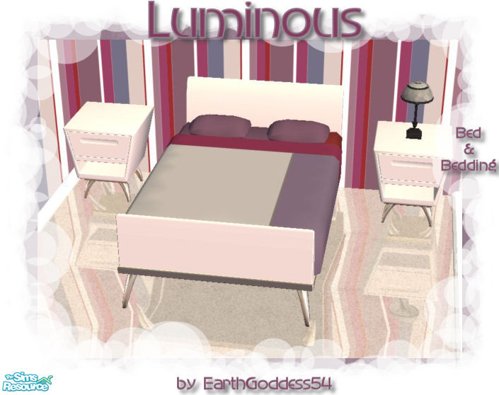 White bed with multi-colored, striped bedding. Made to match the Luminous Bedroom. Enjoy!