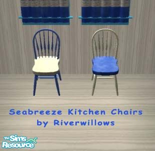 White and ocean blue patterning, both chair back and seat, for mix and match choices. Part of the Seabreeze Kitchen Set by Riverwillows.