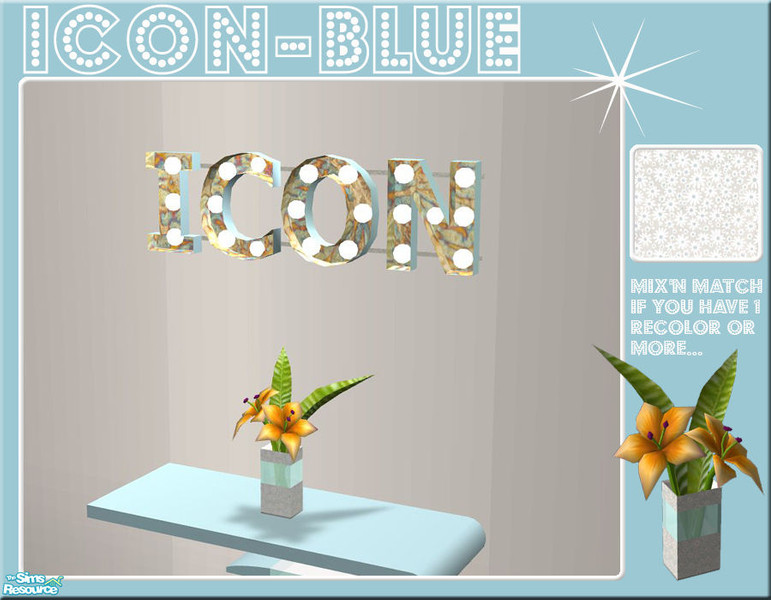 A light blue recolor of my Icon set, please download the mesh set for this to work (see link).