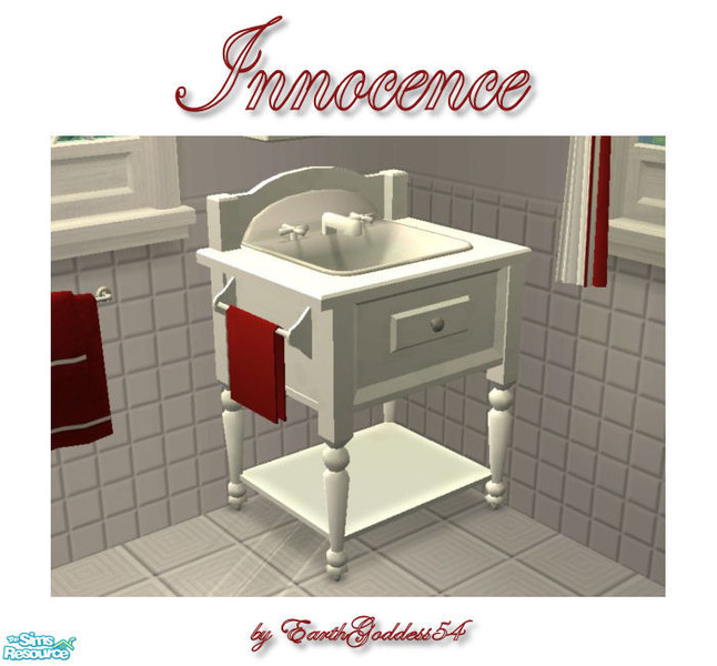 A beautiful white recolor of the Seasons bathroom, with red accent towels. White recolor can be used with Maxis accent towels too! For a matching bedroom suite, see my Innocence Bedroom set. Enjoy!