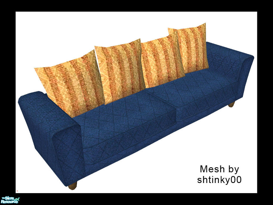 Richly textured blue sofa with gold pillows. Recolor of shtinky00's Arizona Sofa.