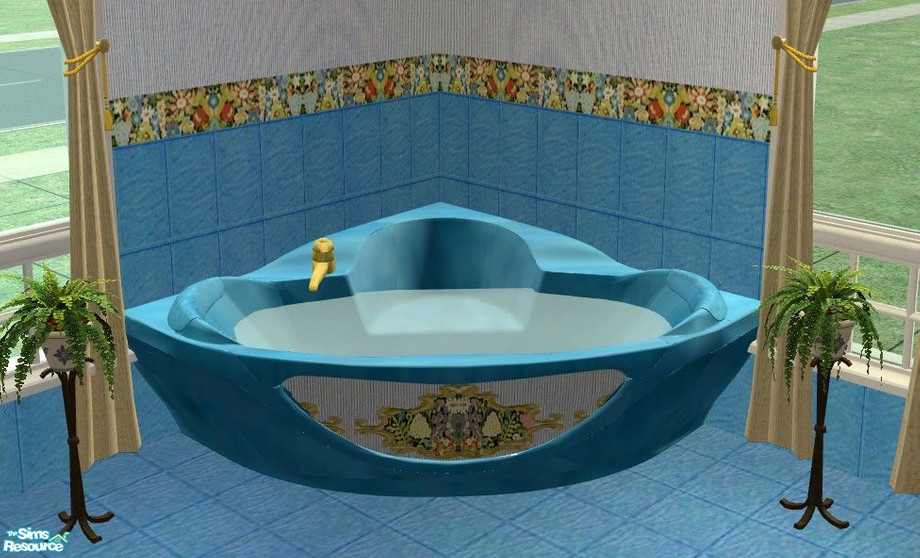 Lovely blue marble spa bath, with floral centerpiece. Part of the TC58 Tranquil Bath by Riverwillows.