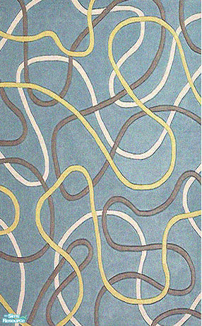 Basic blue high pile carpet with light charcoal, cream, and eggshell white ribbon pattern. From Laura Simly Designs.