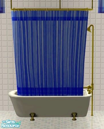 Sims 2 — Blue Bathroom Set - Shower Tub Curtain by Riverwillows — A matching set of small window, tub, and shower