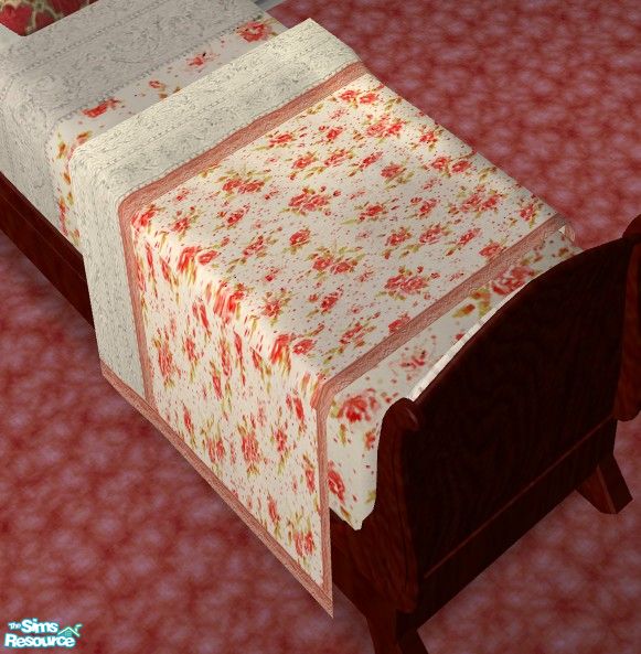 Sims 2 — Candy Apple Bedroom - Bed Blanket by Riverwillows — A lovely Victorian-style bedroom, in rich mahagony and candy