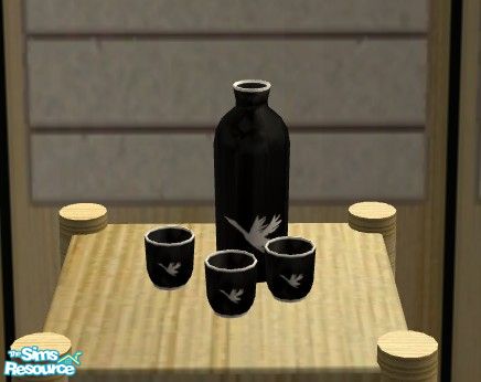 Lovely ebony saki set with cranes, perfect for a bit of saki before bed. Part of the Dansei bedroom by Riverwillows.