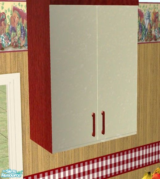Sims 2 — Harvest Kitchen - High Shelf #1 by Riverwillows — A nice cozy kitchen, done in harvest reds, cream, and checks.
