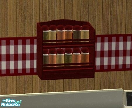 Sims 2 — Harvest Kitchen - Spice Rack by Riverwillows — A nice cozy kitchen, done in harvest reds, cream, and checks. You