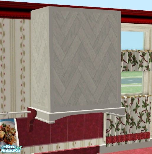 Beautiful Holiday Kitchen featuring pine boughs, and silver, white and cranberry colors. Ready for your sims\' holiday baking! By Riverwillows