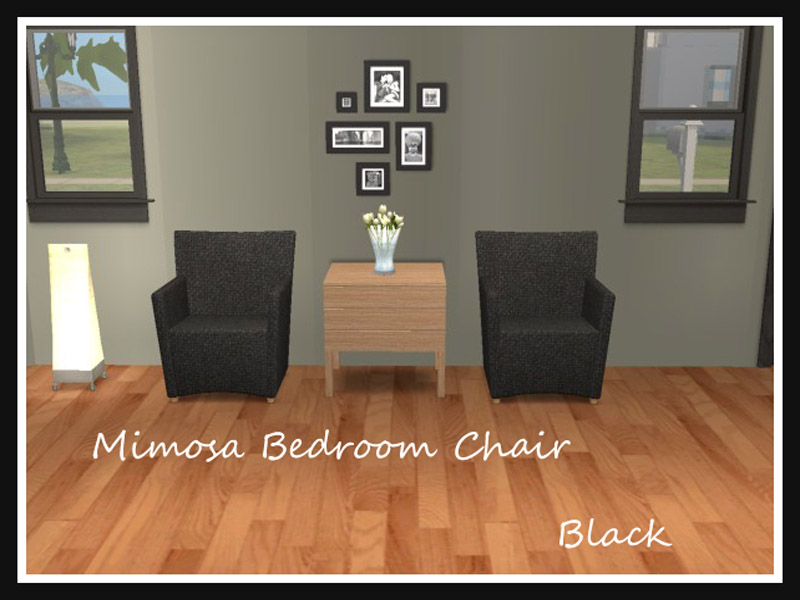 Recolours of the Mimosa Bedroom chair by Sims2Play. I have provided the link to the original mesh also.