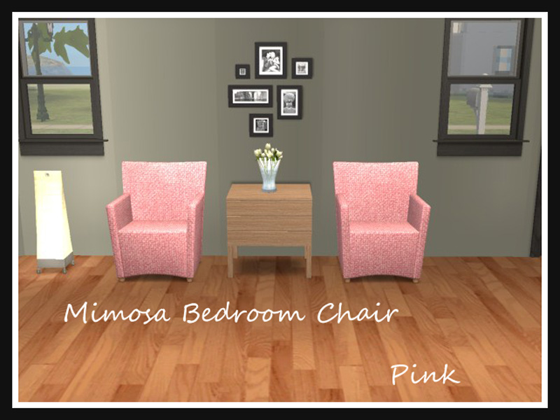 Recolours of the Mimosa Bedroom chair by Sims2Play. I have provided the link to the original mesh also.