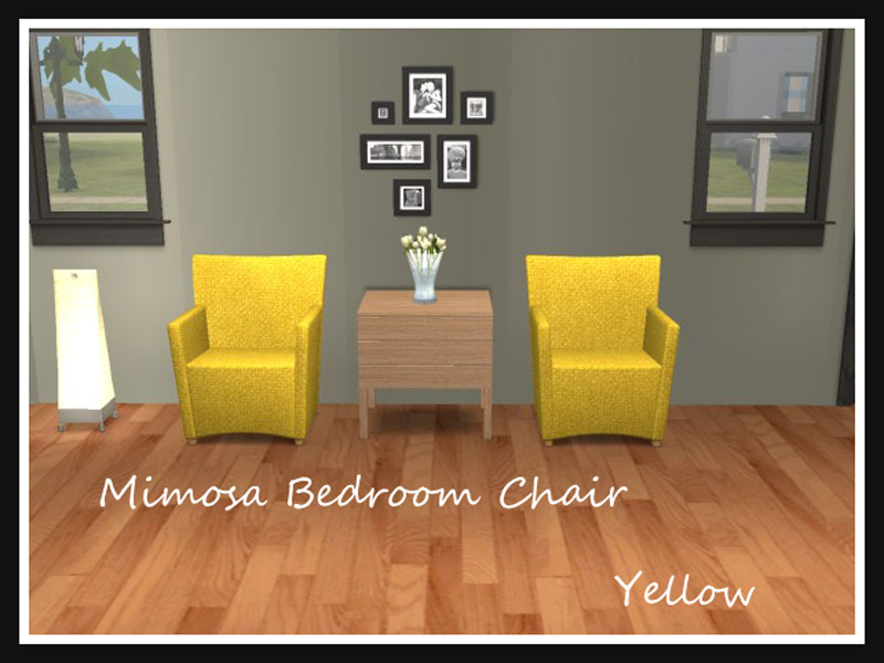 Recolours of the Mimosa Bedroom chair by Sims2Play. I have provided the link to the original mesh also.