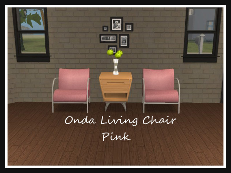 9 recolours of Sims2Play\'s Onda Living chair (Object 23). The original mesh can be found at the bottom of this page http://sites.google.com/site/shoukeir/objects23