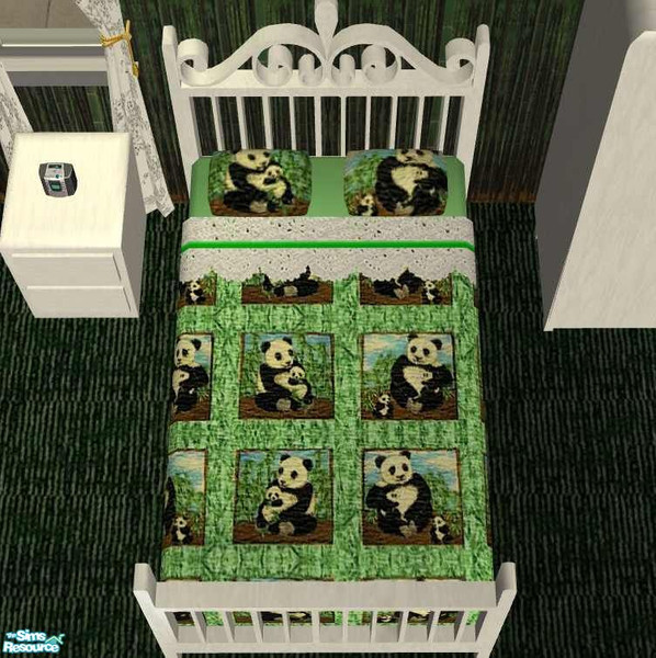Sims 2 — Panda Bedroom - Panda Bedding by Riverwillows — Lovely hand-quilted bedding featuring pandas and a crocheted