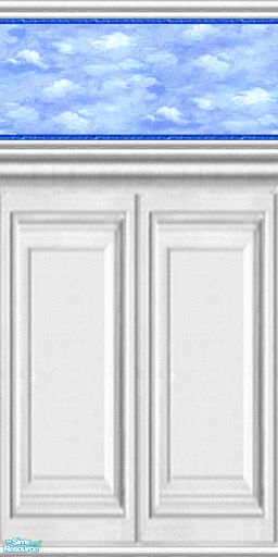 Sims 2 — Winter Blues Bedrooom - Wall by Riverwillows — White wall paneling with soft blue sky border. Part of the Winter
