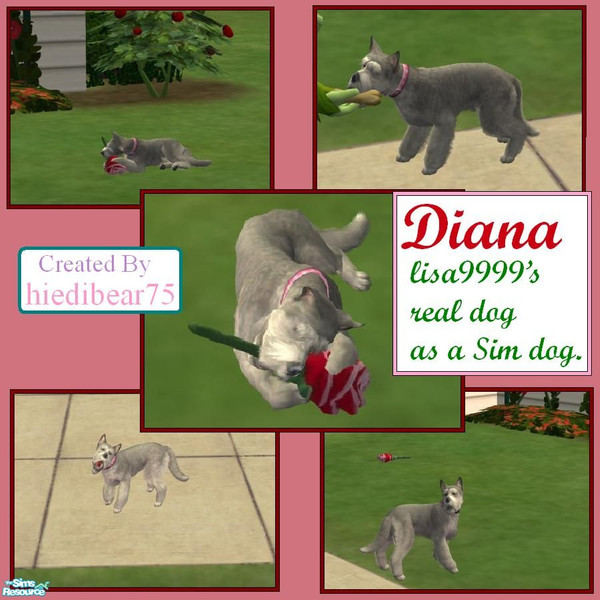A very nice and talented fellow TSR member has a very sweet and loving dog in real life. Diana\'s health in \"real life\" isn\'t the best......but Sim dogs have health issues. So now at least she can live forever in Lisa\'s heart and game and now in yours.