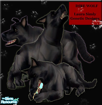 Laura Simly Genetic Designs reincarnated this long lost breed of wolf. Canis Direus, is the largest and fiercest wolf ever to walk the Earth. The Sim that can tame this creature will win a friend who will protect to the death. Not recommended for families with small children.