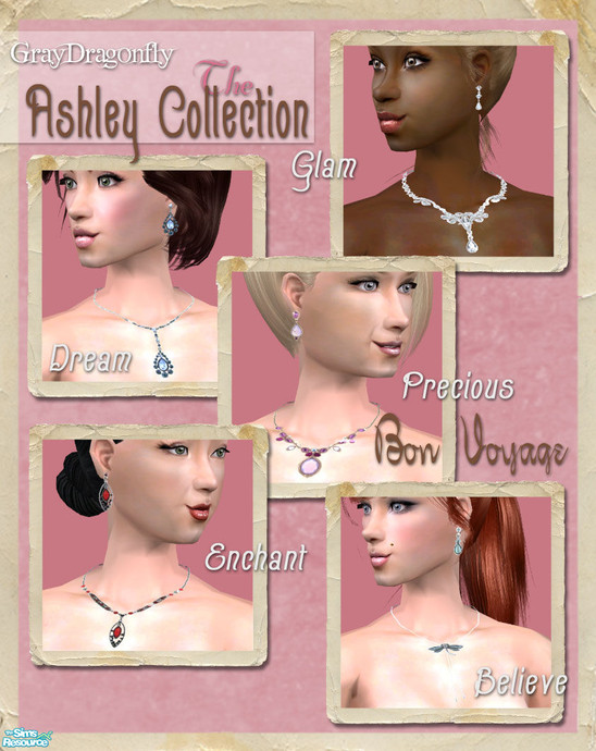 Sims 2 — The Ashley Collection (BonVoyage) by GrayDragonfly — This set includes 5 jewelry sets. Each individual piece