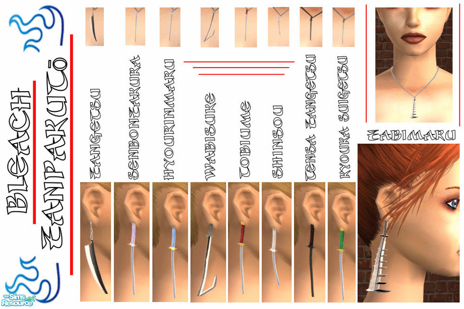 Set of earrings and necklaces based on the Bleach Shinigami Zanpakutō
