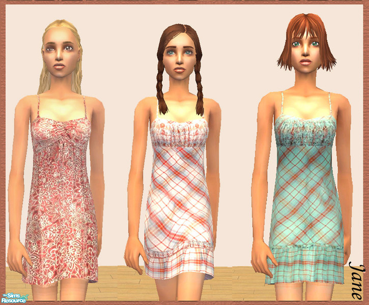 This collection consists of three dresses; one with floral pattern, and two plaid dresses.
