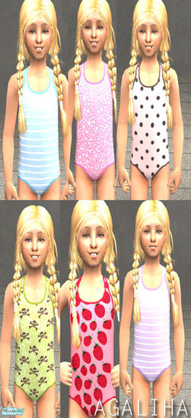 A cut set of six bathing suits for your girls. These require no mesh.