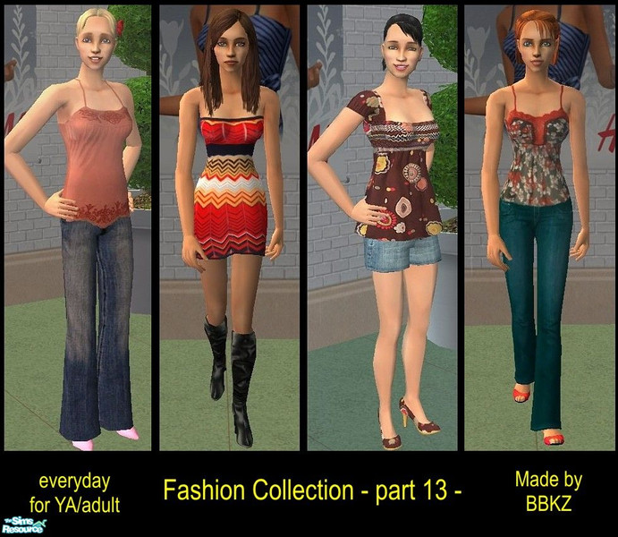 13th part of my outfit collection. This time I give you four beautiful everyday clothes for YA/adult. Each item needs different mesh (see Notes or check Individual Items)... Meshes are FREE :-) Enjoy!