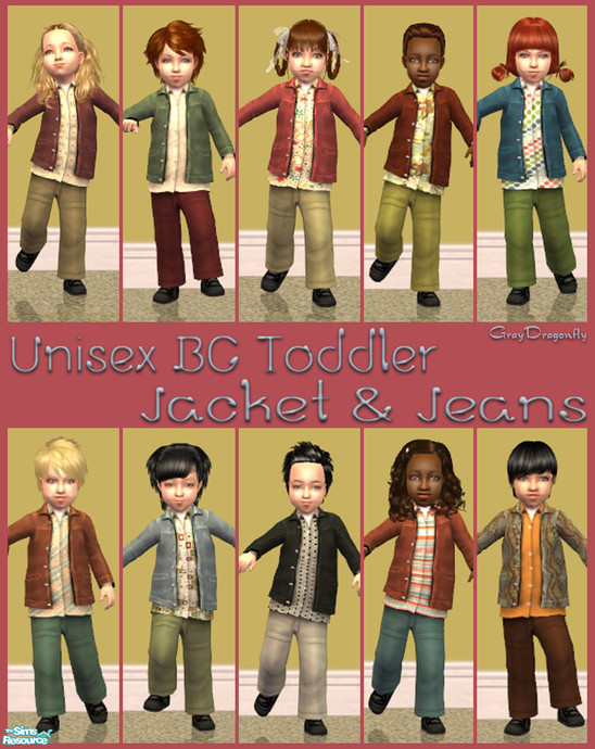 Sims 2 — Unisex BG Toddler Jacket & Jeans by GrayDragonfly — This set includes 10 recolors of the Unisex BG Jacket
