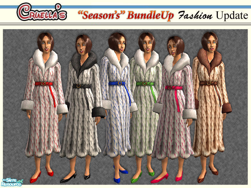 Sims 2 — am_BundleUp by Cruella — Colored spiked faux fur coats for your Sims Season.