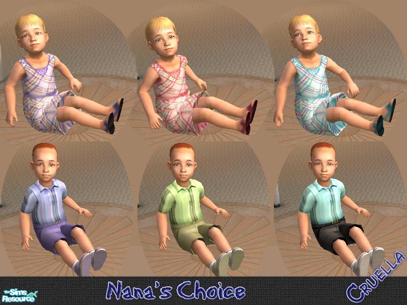 Cute plaid dresses for the Tot female and striped polo and shorts for the Tot male.