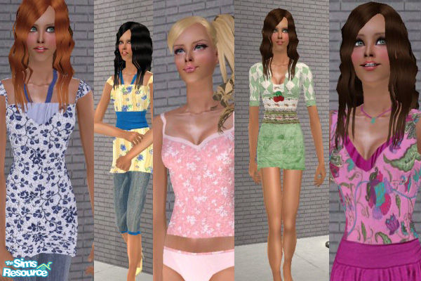 4 everyday outfit and one undie for your sims.. Serasims is cloesed so you can get the mesh from: http://files.sims2graveyard.com/serasims/meshes/Mesh_Serasims_CloseMiniDressHeels.zip