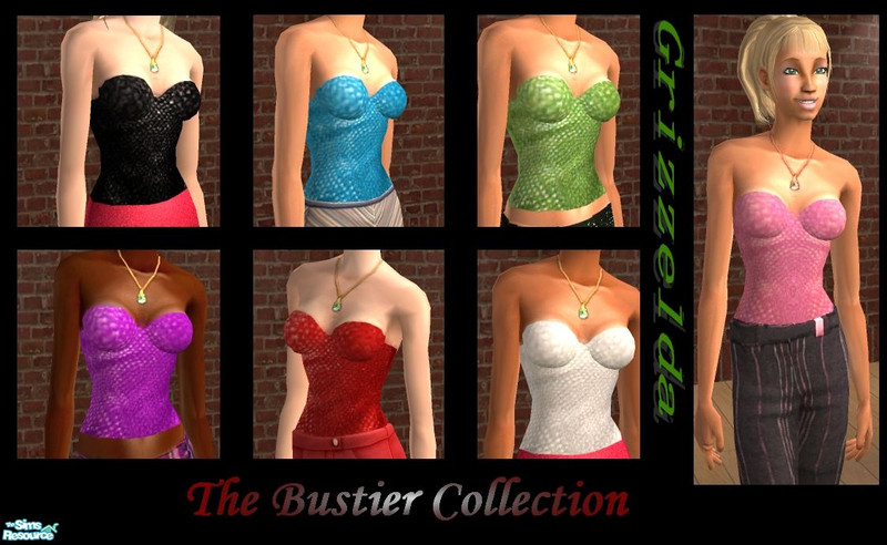 This set of faux reptile skin bustiers look great with a skirt, slacks or simply dressing up a pair of jeans for a night on the town. My mesh_lcmfittedtop042605 is needed for these to work.