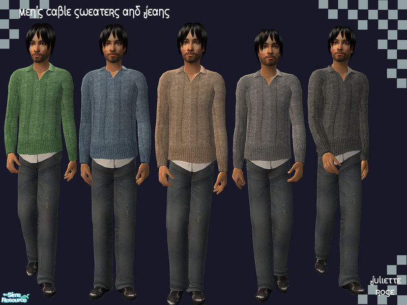 A set of five cable knit sweaters outfits over a dress shirt and jeans. Enjoy!