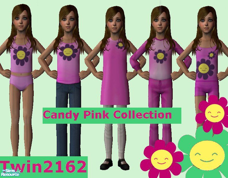 This Collection is for your little tator tots. Includes - Jamies, Underwear, swimmers, Everday and Formal! The whole set is Cnady Pink colour, I dentified by the cute flower on every item of clothing. This collection also comes in Blue!! please see my page! Thay are all base game compatable