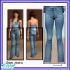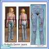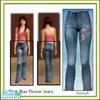 Set of 4 denim jeans for female adults everyday. A pair of black jeans, plain blue jeans, dark floral embroidered blue jeans and light blue butterfly patterned jeans.