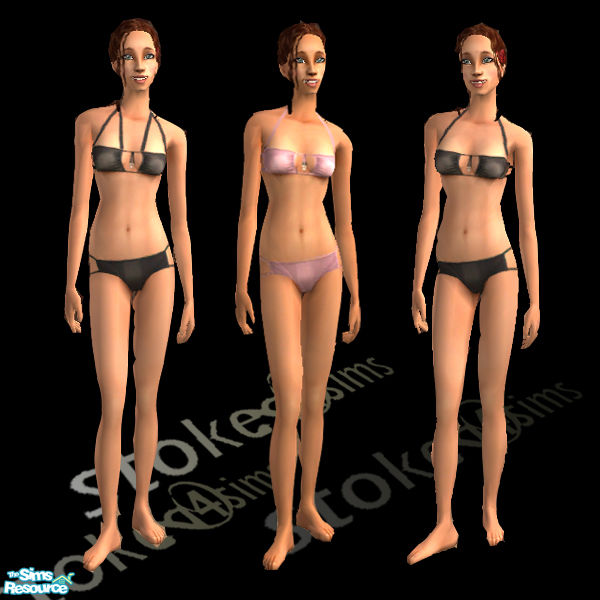 Trio of designer bikinis based on an actual design by Dior. Two ebonys and one splash of pink class up any poolside function.