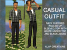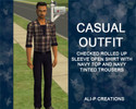 An everyday outfit for male adult sims. Featuring checked open shirt with coloured ends with a coloured or white under vest and trousers.