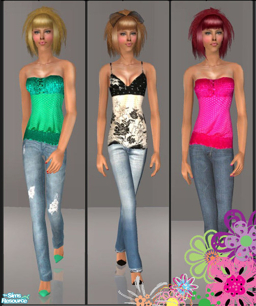 3 outfits for your sim ladies. You need to download mesh from http://www.glamorouslounge.net/ It is in the women -> meshes section 1st page 2nd one