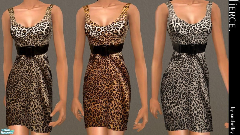 A set of 3 silk cocktail dresses in 3 prints: cheetah, leopard, and snow leopard, all with black empire waist belts. Enjoy!
