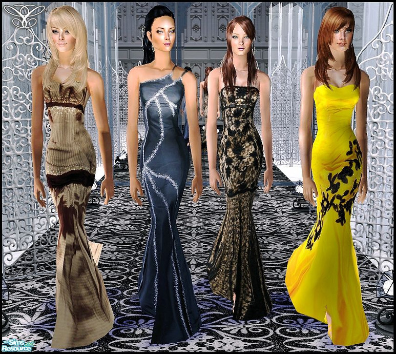 4 prom dresses for female adult sims! Don\'t forget to download the required mesh by Simchic (MermaidGown3-2-05 in the freebies mesh section)! Happy simming!