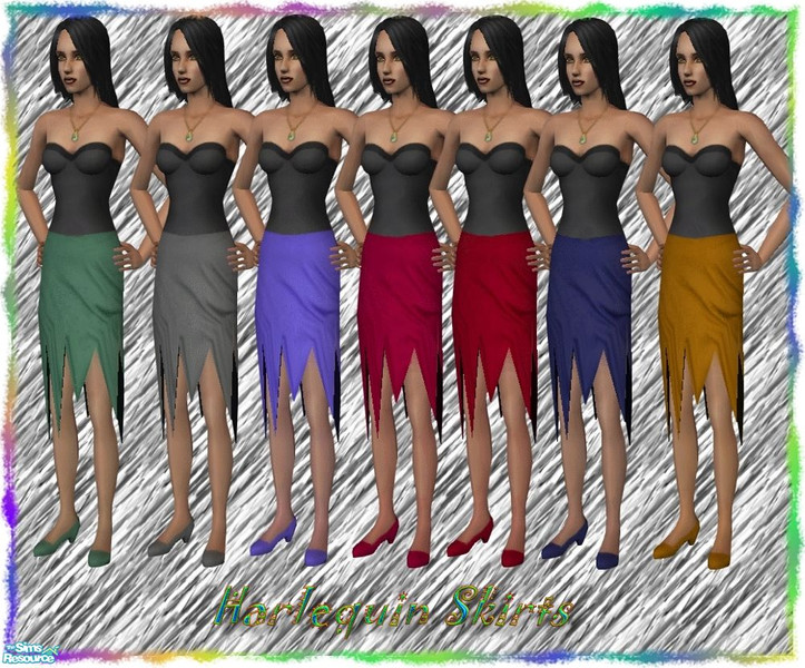 Sims 2 — Harlequin Skirts Set by Malitia — New colorful skirts for your Sim Ladies. You'll need the Mesh and at least one