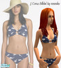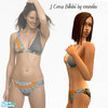 Let your Sims swim, frolic and tan in style with six new print design bikinis from the summer 2008 J. Crew swimwear line. Includes a blue stripe design, a gray and orange design, a pale green paisley design, a brown floral design and a navy blue seahorse design. See individual items for closer view.