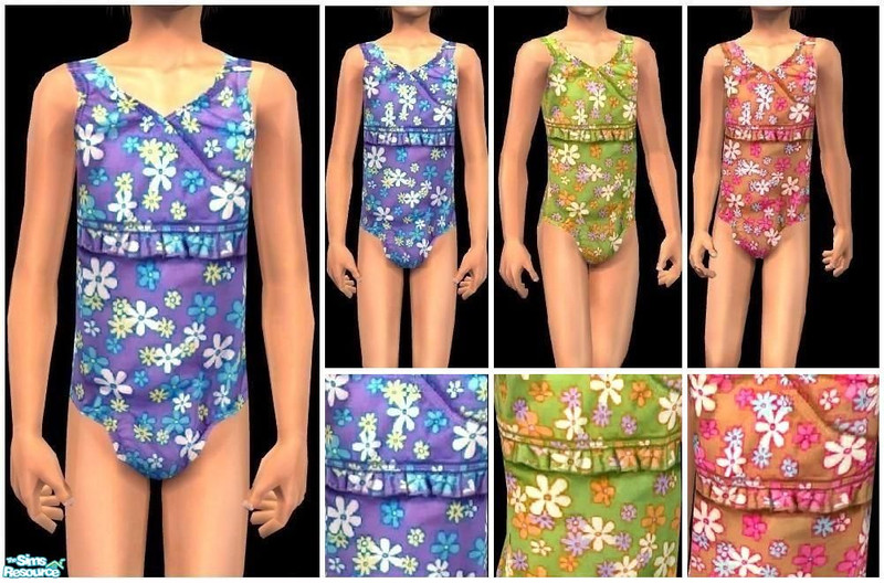 Flower bathing suit for girls. No mesh or expansion pack required.