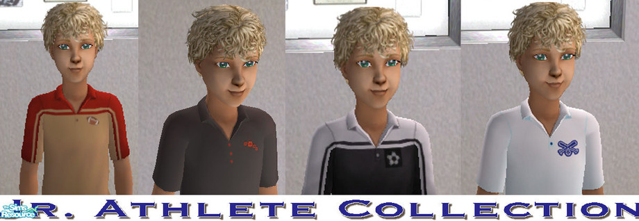 Sims 2 — Jr. Athlete Collection by okadoka — Sport Themed Polos for the Jr. Athlete in your family. These polos allow