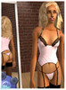 Set of 6 sexy lace trimmed bustiers with adjustable attached garter and stockings.