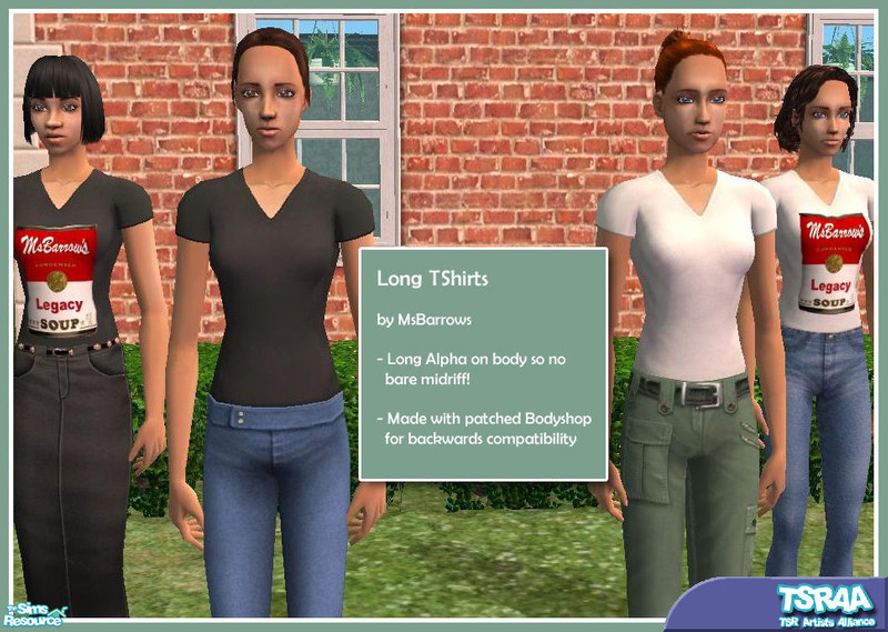 A couple of basic white and black TShirts with long body alpha (no bare midriff!) I made in order to make \"Legacy Soup\" tshirts for my Sim-Me to wear in game. And I\'ve even thrown in the Soup tshirts themselves as a bonus for any of my readers who\'d like to sport one.