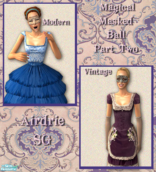 One of 4 formal gown sets featuring both a modern gown and a vintage gown. The masks I used in the picture are from Confide's fabulous Carnival Mask Set. Enjoy!