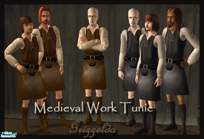 This set of leather work tunics are perfect for the common man! For ages elder, adult, young adult, and teen.