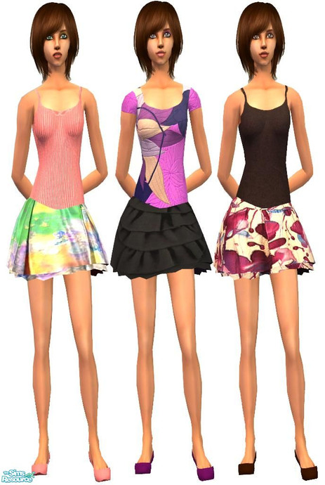 This set has 3 female outfits with mini skirts for adults and young adults.